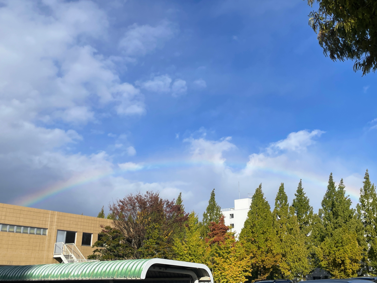 初回訪問時には岐阜大学の上空に虹が出現 学生たちの奮闘を見守っているようでした